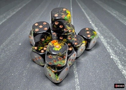 Dice: Brush 16mm D6 Deep Forest / Gold (12)